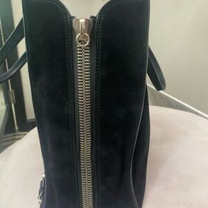 Authentic Balenciaga Suede Tote with silver studded hardware. Mirror included along with pony hair side zippers to expand the size.