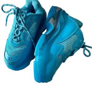 Balenciaga Triple S Clear Sole Cyan Blue Chunky Dad Sneaker NIB Womens Size 37