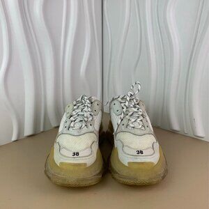 Balenciaga Triple S Womens Mesh Platform Sneakers Size 38 Rice White