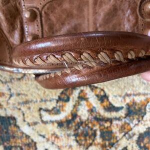 Beautiful. Has wear on corners and covered hardware but it’s part of the beauty. Clean, no smells. All photos represent actual bag available.