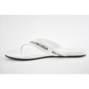 Balenciaga White Black Leather Logo Thong Slide Slip On Sandal Flip Flop Flat 37.5