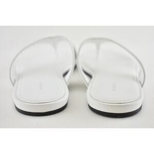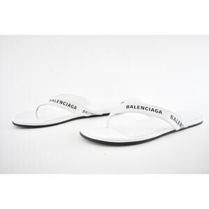 Balenciaga White Black Leather Logo Thong Slide Slip Sandal Flip Flop Flat 37.5