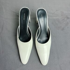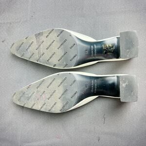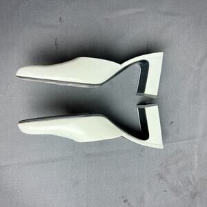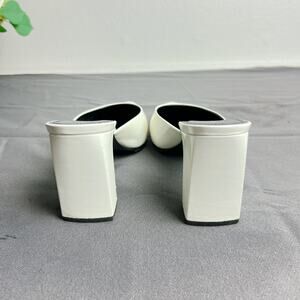 Elegant white mules with a sleek design. Features a comfortable block heel. Perfect for any occasion. Didn’t use, they were too big