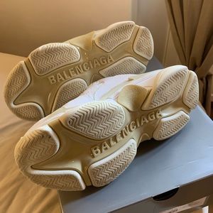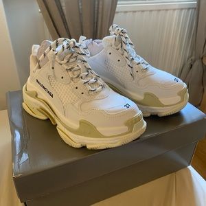 Stylish Balenciaga sneakers. White upper with cream accents. Chunky sole design. Lace-up closure.