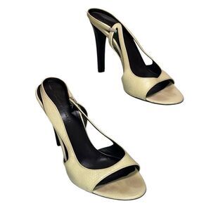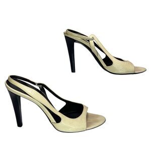 Balenciaga, Women Heel Sandals Patent Leather Slingback, Cream, 7.5 US, 37.5 EUR