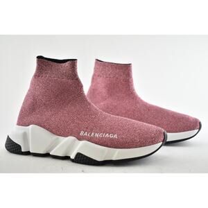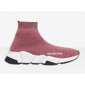 Balenciaga Women Speed Sock Trainer Pink Glitter White Black Runner Sneakers 42