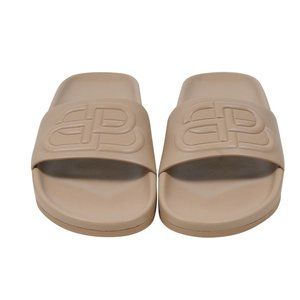 Balenciaga Womens BB Logo Flip Flops EU35 US5 Tan Brown Leather Slides Sandals