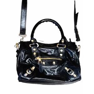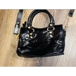 Balenciaga Women's Leather Metallic Edge Classic Mini City Bag Black One size