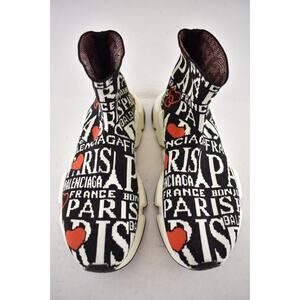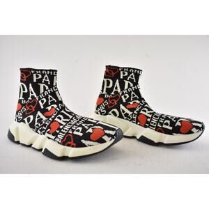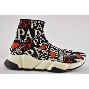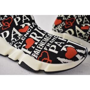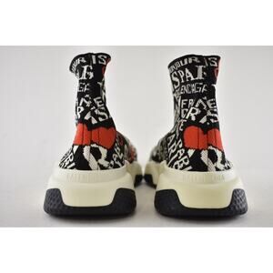 Balenciaga Women's Speed Sock Trainer White Black Red Paris Runner Sneakers 36
