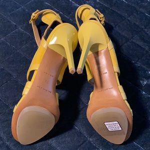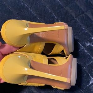 Gorgeous bright yellow color or suede and leather for a real statement heel!