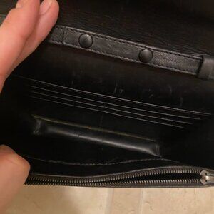 This wallet on chain is crafted with a shiny and smooth black calfskin leather. The fold-over flap top magnetic snap closure opens to a black leather lined interior with a bill slot, credit card slots, and a zipper pocket. The detachable black-tone chain allows for this piece to be carried on the shoulder or as a clutch. This chic wallet on chain is perfect for day or a night out, with the distinctive style and quality of Balenciaga!