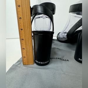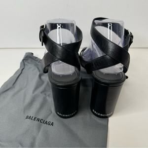 Balenciaga heeled sandals strappy black open toe wedge block heel logo sz 41 11