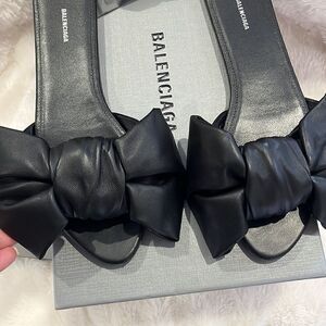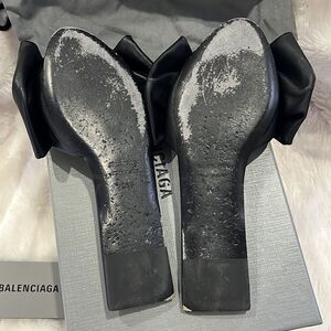 This are used but in very good condition Balenciaga black leather mules with a front bow. They come with box and dust bag. Size 36.5. All they need is a good spa for the soles and they will be like new. 100% authentic