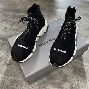 Balenciaga speed 2.0 lace up recycled knit sole black white black US 8