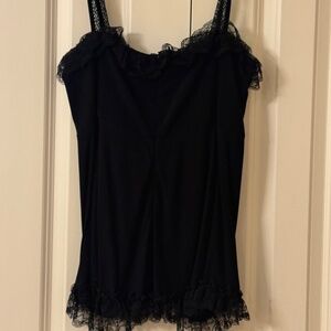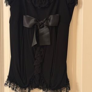 Balenciaga black camisole with lace straps and bow-front, size 40 (US 10), 100% rayon viscose, never worn
