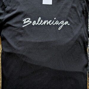 Balenciaga black t-shirt, brand new with tags. Features a stark white brand name on the front. Size men's medium.