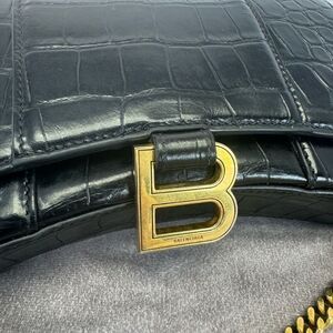 Balenciaga Hourglass Black Croc-Embossed Wallet on Chain Bag