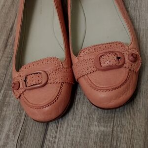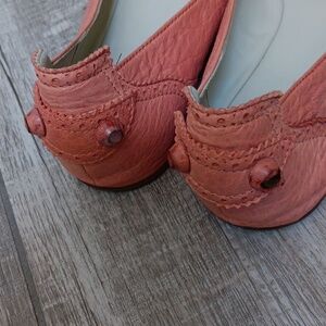 USED..OLDER LOAFERS BUT STILL HAVE MORE LIFE TO LIVE...SHRIMP COLOR..TEXTURED LEATHER..PEGS HAVE SOME WEAR..SEE PICS..FOOTBEDS CLEAN..REALLY CUTE..SIZE 41..MEASURE ON INSOLE IS EXACTLY 10" IF THAT HELPS WITH SIZING..REPEAT..USED WITH SOME WEAR AS SHOWN IN PICS