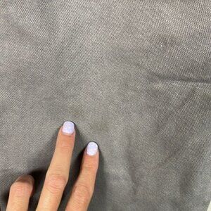 Couple of light stains on back leg as pointed out in photo. Accent stitching on one of the back pockets has partially come out. Does not affect use, just appearance.