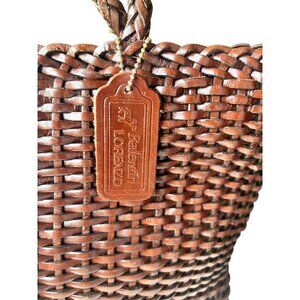 Balentin Lorenzo Handwoven Leather Tote Bag With Logo Accents & Long Handles