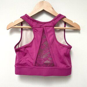 Balera berry pink crop top sports bra with triangle lace cutout racerback. EUC worn a few times. Size is MC, fits like a 9/10.