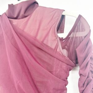 Balera Burgundy Mesh Draped Lyrical Dance Leotard Ruched Long Sleeve Size Medium Adult