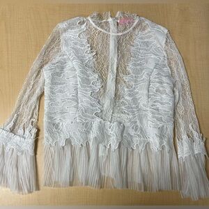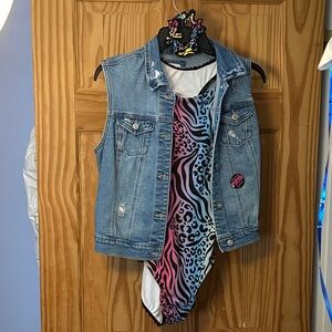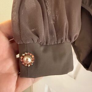 Elegant brown bodysuit featuring long sleeves and a stylish tie neck. Pearl button on the wrists. Only worn for my daughter’s solo. Like new. Beautiful on stage or for pictures. Adult small B6
