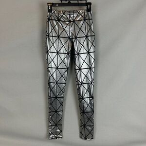 Balera Dance Set Adult Small Silver Geometric Leggings Black Zip Vest Metallic