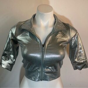 Balera Womens Silver Dance Metallic Cropped Jacket Zip Front SA Small Adult