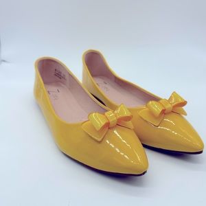 Estas balerinas están totalmente NUEVAS, en su caja original, esta marca es de Brazil. El color mostaza en patente realza su belleza, además tiene un lazo sólido de acrílico que le da un toque de zapatilla de Cenicienta, viene perfecto con esta temporada que los lazos están de moda!