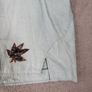 Baletti Vitorino Top Women’s Size M Leaf Applique Slit Hem Powder Blue Bohemian