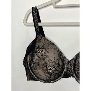 Bali 42D Black Beige Lace Floral Underwire Bra