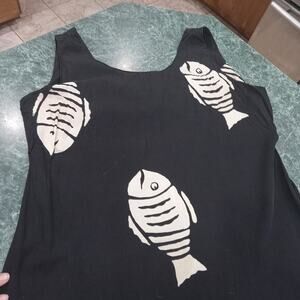 Bali Batiks Women's Sleeveless Maxi Dress Large Fish Pattern Boho Lagenlook Euc