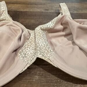 Bali Beige Unlined Underwire Bra Size 36DD Adjustable Straps Floral Lace Accents