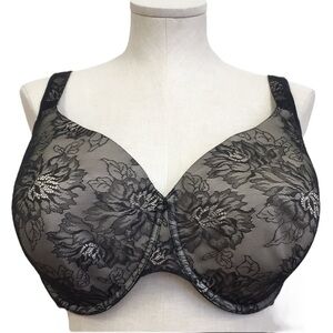 Bali Black Soft Beige Lace One Smooth U Side T Shirt Bra Womens 42DD Underwire