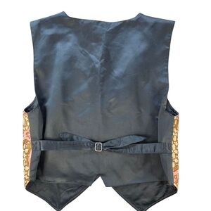 Add a unique, artistic flair to your wardrobe with this stunning Bali Chic vest! This one-size beauty features an intricate, hand-beaded front with delicate faux pearls and golden seed beads over a bold pink and brown batik-inspired pattern. The back is solid black with an adjustable belt and pointed hem—perfect for achieving that eclectic boho look.