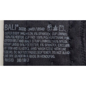 Bali Comfort Revolution Black Adjustable Strap Wire Free Bra Size 36DD;