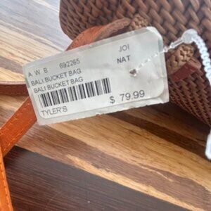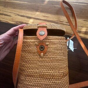 NWT, Bali Straw Cross Body Bucket Bag, Strap is 20" long, Snap closure, Interior is a beautiful 100% Rayon floral printed fabric.