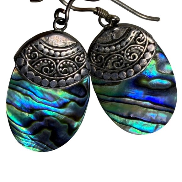 Bali Design Abalone Shell Dangle Earrings Sterling Silver 925 Oval