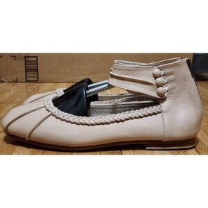 Bali Elf Muse Ballet Flat Leather Ivory Size 9.5 Ankle Strap Zip Close Handmade