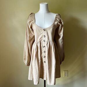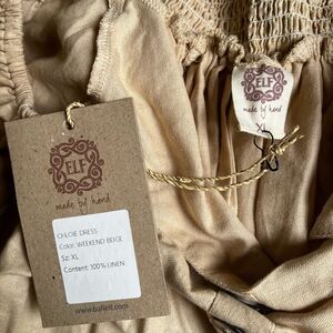 boho linen mini dress, Bali Elf Chloie dress, beige puff sleeve linen dress, NWT linen empire waist dress, XL linen babydoll dress, sustainable fashion, handmade Bali linen, romantic cottagecore dress, fairycore festival outfit, minimalist linen clothing, natural fiber dress, vintage inspired puff sleeve dress, weekend beige neutral dress, ethical linen fashion, bohemian summer fall style