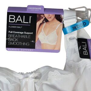 Bali Flower Full Coverage Support Bra White 36DDD Breathable Back Smoothing NWT
