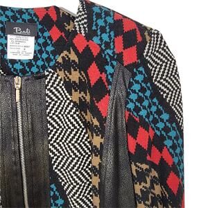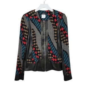 Bali Houndstooth Mix Print Colorful Vegan Leather Trim Zip Front Jacket VTG - 6