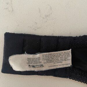 Fabric Information: Top Cup, Strap: 57% polyester, 28% nylon, 15% rayon, Bottom Cup, Side, Center Belt: 76% nylon, 24% polyester, Top Cup, Center Belt and Strap Linings: 100% nylon, Bottom Cup & Side Linings: 100% polyester, Center Back: 68% nylon, 32% spandex.