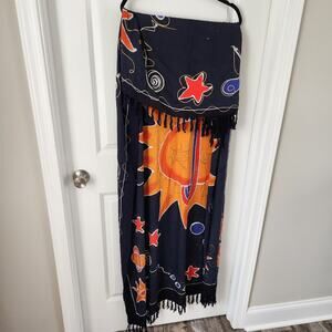 Bali Moon Navy Blue Scarf Wrap with Fringe
