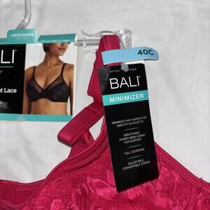 Bali One Smooth U MINIMIZER Lightweight Lace Underwire Bra Size 40C Magenta $48