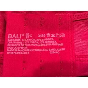 The Bali One Smooth MINIMIZER Lightweight Lace Underwire Bra in size 40C is a stylish and supportive undergarment designed for women. Featuring a beautiful magenta color with a batik pattern, this bra is made of a comfortable blend of spandex and nylon with satin fabric. The underwired design provides support and lift, while the lace and embroidered accents add a touch of elegance. With features like full coverage, back closure, adjustable straps, and comfort straps, this Bali minimizer bra offers both style and functionality for everyday wear.