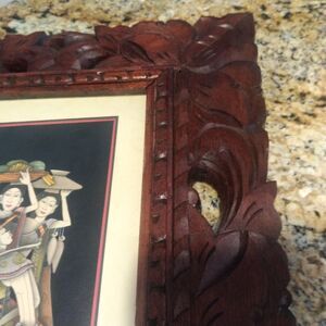 Bali Painting Drawing Carved Wood Frame Elongated People Fruit Nice!