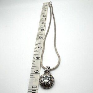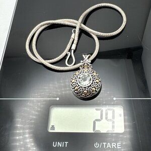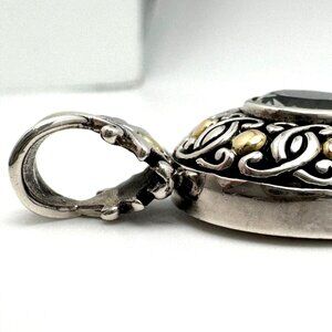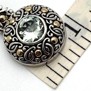 Bali Prasiolite Pendant Necklace Sterling Silver 18K Gold Scrollwork 16"