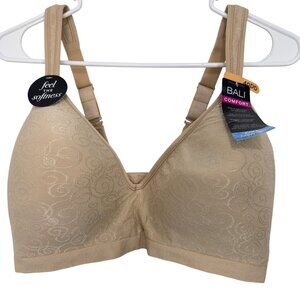 Bali Womens Comfort Revolution Wire-Free Bra Size 40DD Beige Nylon Spandex NEW